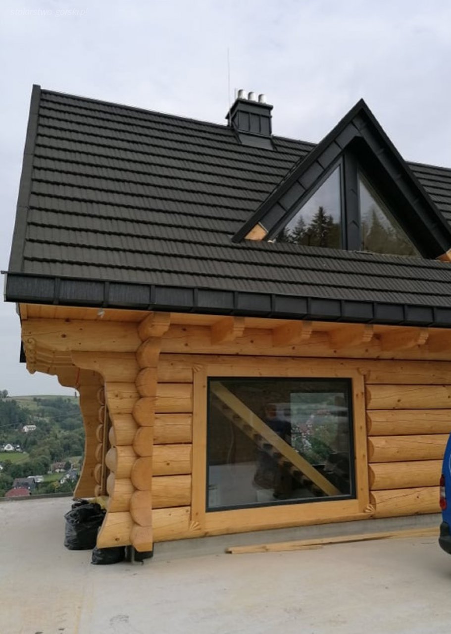 - szerszy profil drewna o grubośći 92 mm wykonany z kantówki czterowarstwowo klejonej