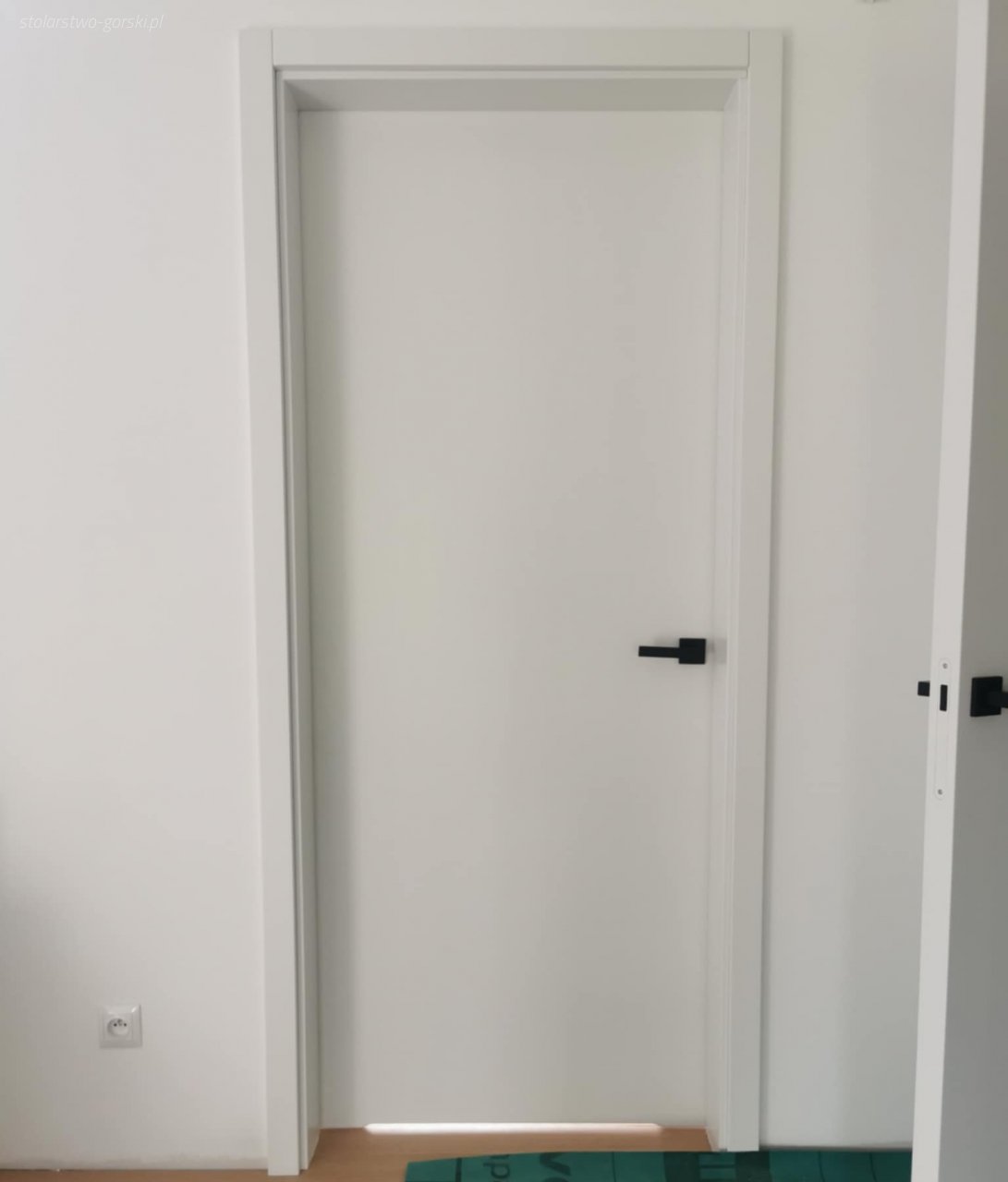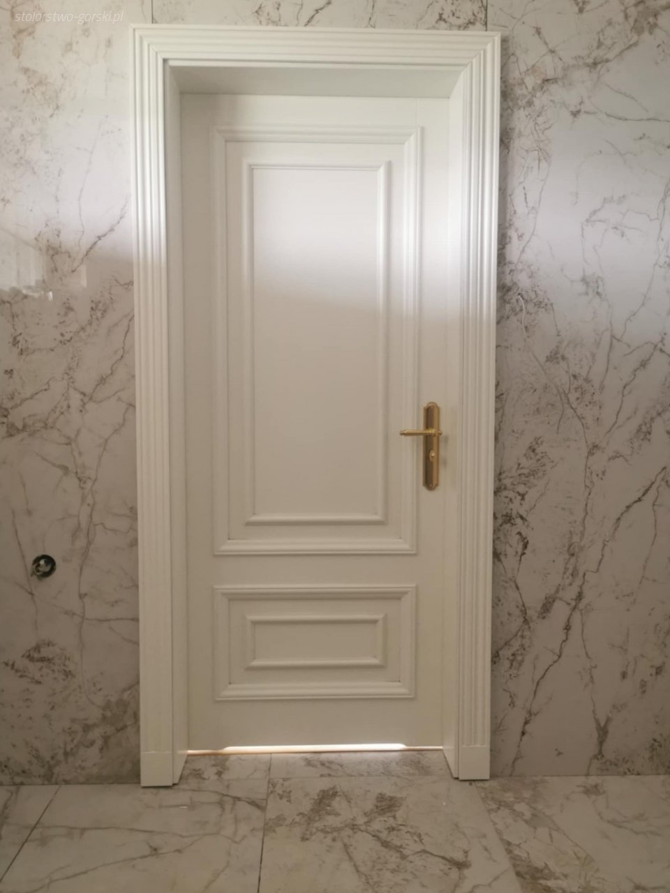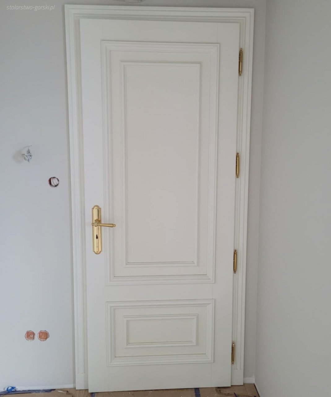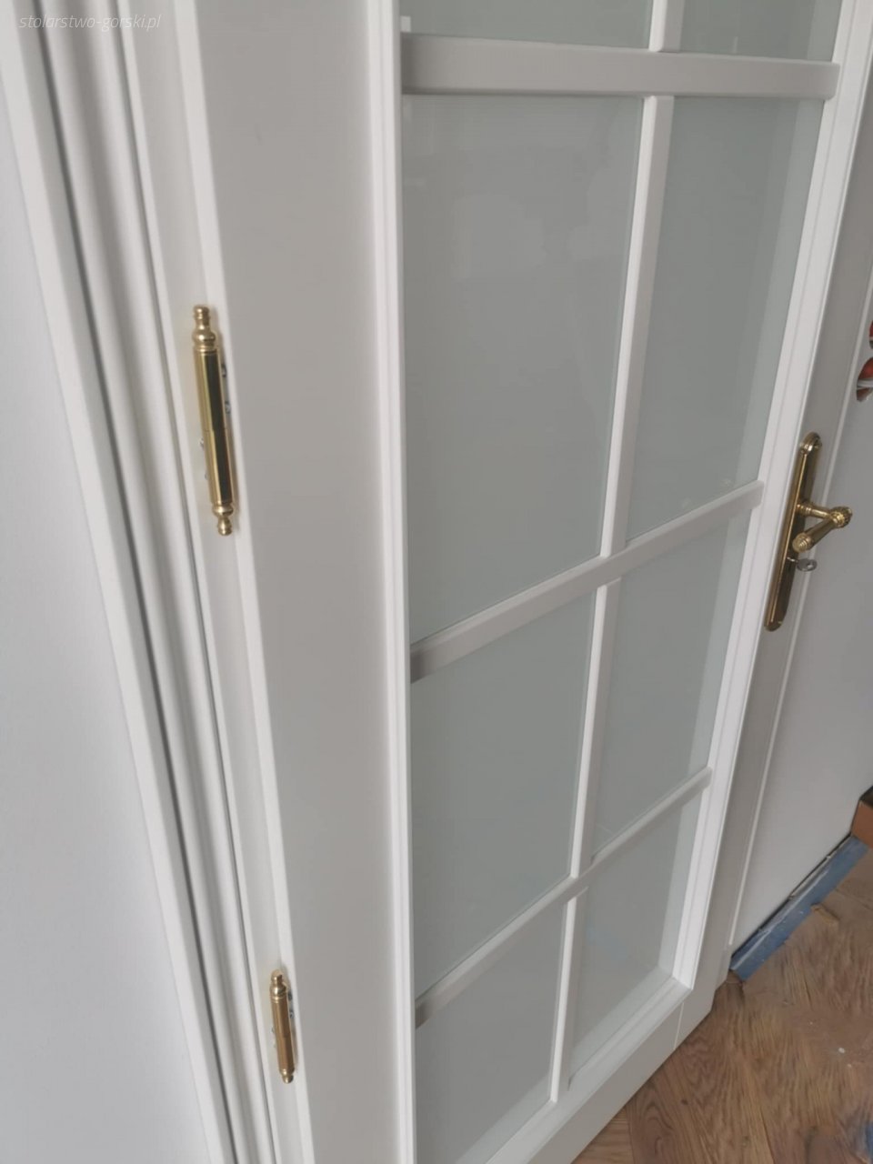 Drzwi wewnętrzne sosnowe klejone warstwowo, fornirowane 4 mm obłogiem, wykańczane utwardzanym lakierem niemieckiej firmy Remmers.