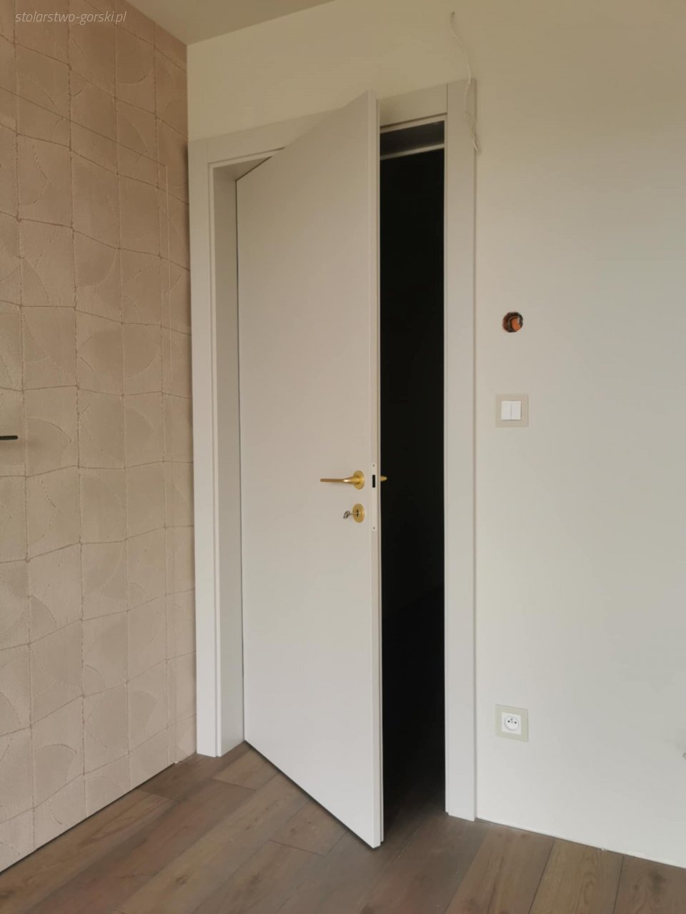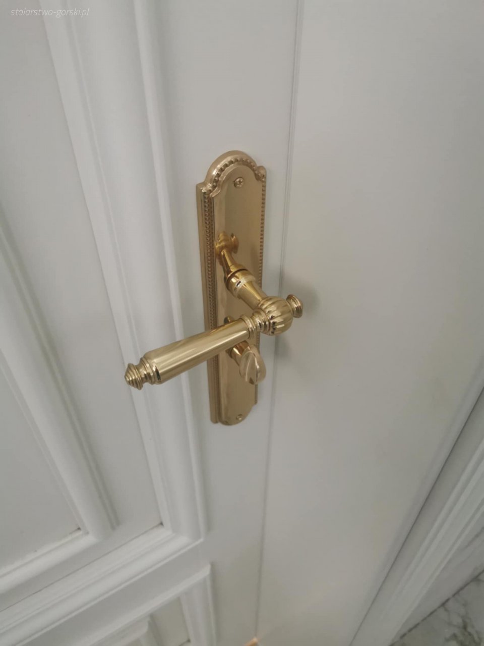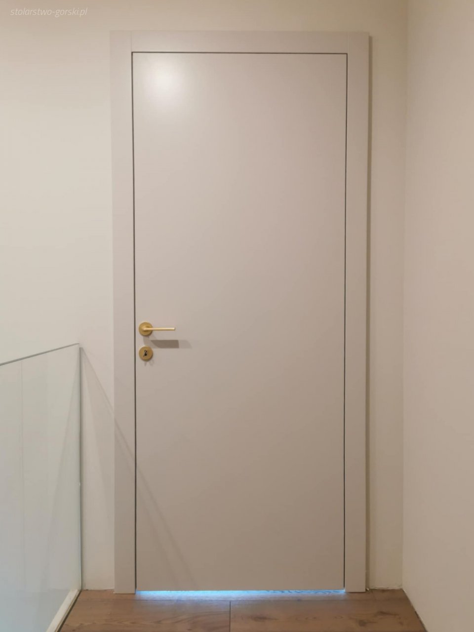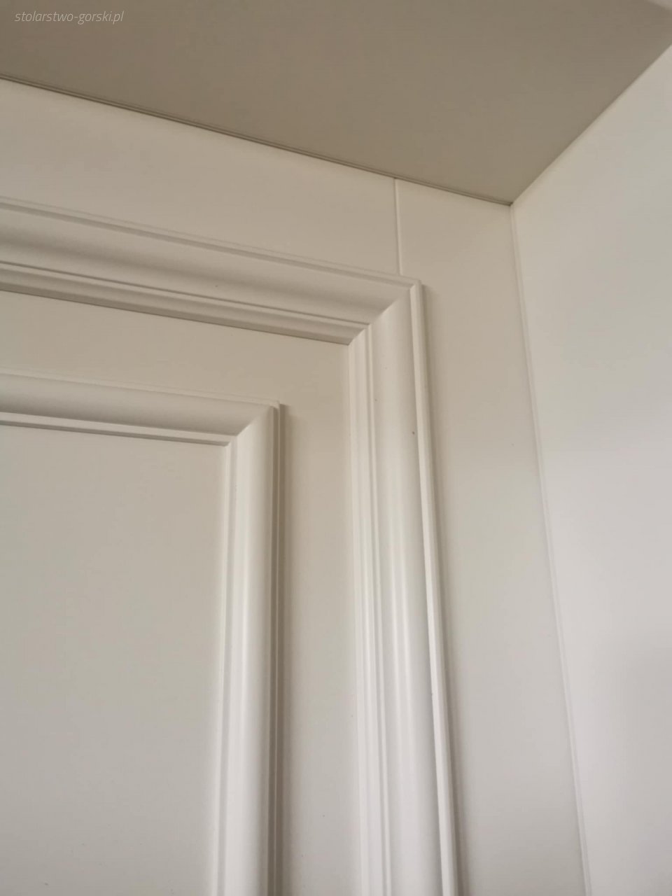 Drzwi wewnętrzne sosnowe klejone warstwowo, fornirowane 4 mm obłogiem, wykańczane utwardzanym lakierem niemieckiej firmy Remmers.